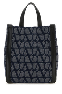Shopping bag realized in Toile Iconographe with leather inserts. - Two leather flat handles - Adjustable detachable leather shoulder strap - Magnetic button closure - Lined interior with a patch pocket DETAILS Exterior: 100% Fabric 100% Leather Lining: 100% Fabric Finishing: Enameled metal Made In Italy Width: 21 cm Height: 25 cm Depth: 8 cm Handle height: 8 cm Min shoulder strap length: 50 cm Max shoulder strap length: 55 cm