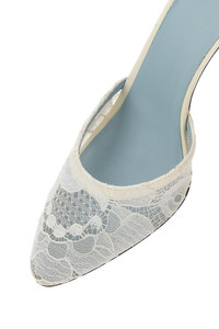 Pumps realized in lace and leather enriched by VLogo Signature metal detail at the back. - Almond toe - Laces to tue on the ankle - Printed logo on the inside - Thick heel DETAILS Two-tone lace and leather Foliefoliage pumps Exterior: 100% Fabric 100% Leather Interior: 100% Leather Sole: Leather Made in italy Heel height: 8,5 cm