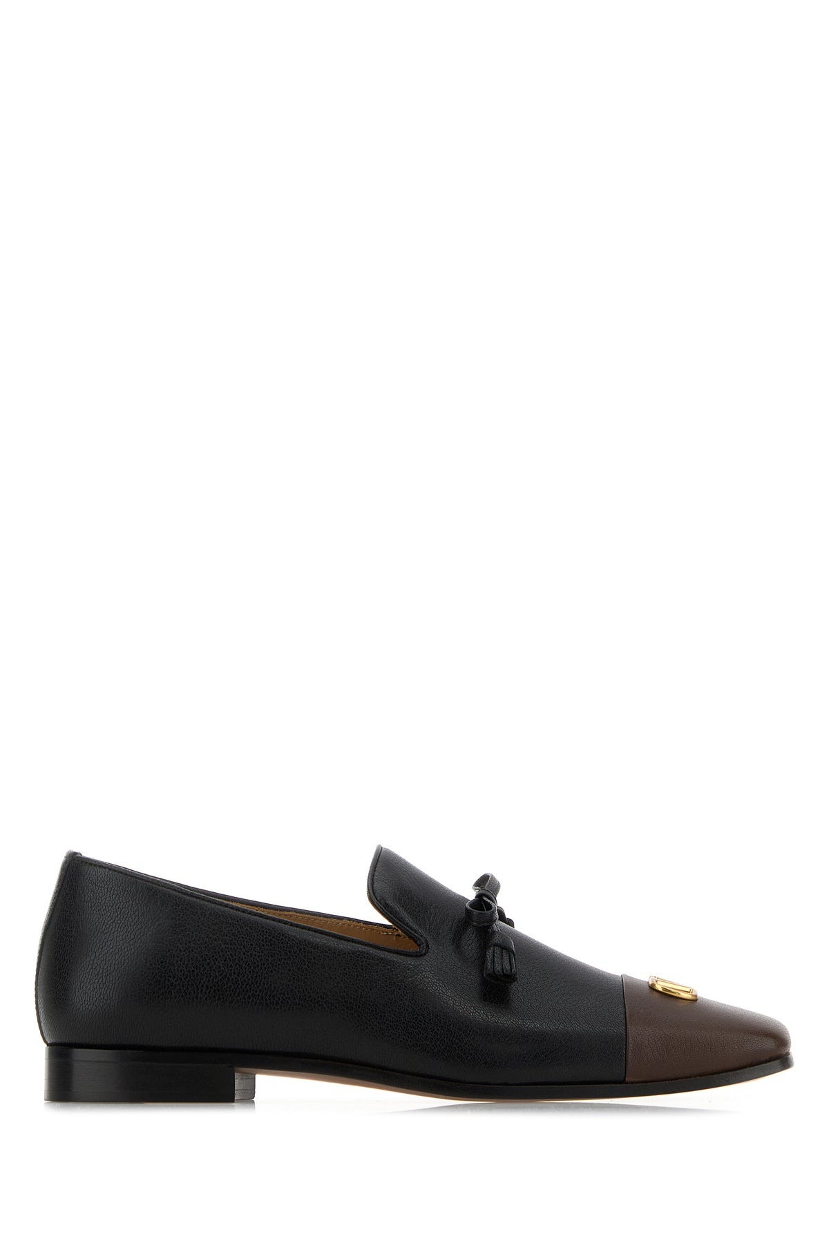 Loafers realized in pebble leather enriched by metal VLogo detail on the toe and decorative bow with tassels on the vamp. - Squared toe - Printed logo on the inside DETAILS Two-tone leather Babouchoes loafers Exterior: 100% Ovine leather Interior: 100% Leather Sole: Leather and Rubber Made in italy