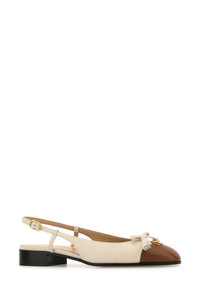 Slingback ballerinas realized in leather enriched by decorative bow with tassels and metal VLogo detail at the front. - Tapered toe - Adjustable leather strap at the back - Printed logo on the inside DETAILS Two-tone leather Valet Du Roe ballerinas Exterior: 100% Leather Interior: 100% Leather Sole: Leather Made in italy