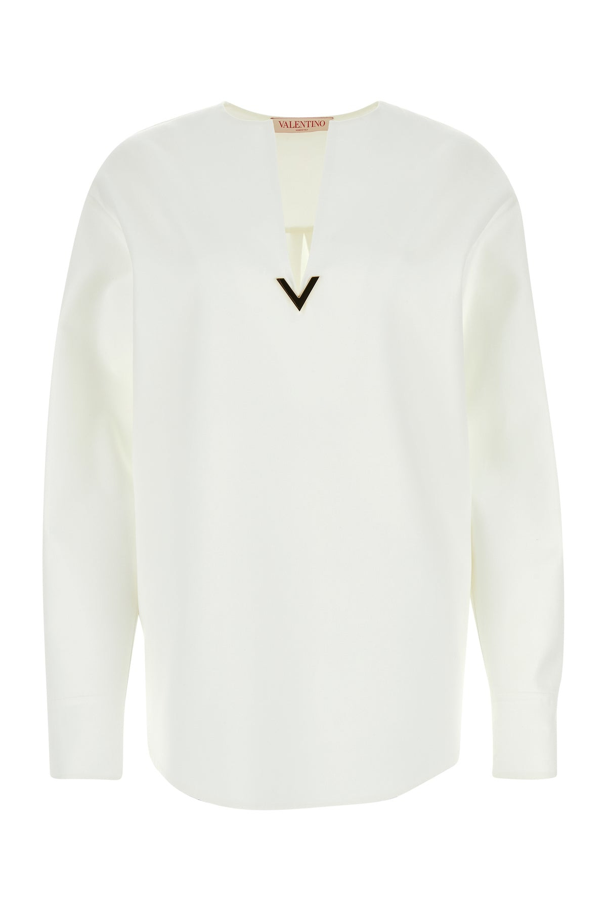 Blouse realized in cotton blend enriched by V metal detail at the front. - V neckline - Buttoned cuffs - Rear yoke and placket DETAILS Exterior: 99% Cotton 1% Nylon Made In Italy Model is 177 cm and is wearing a size 38