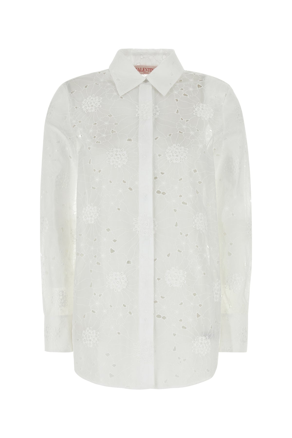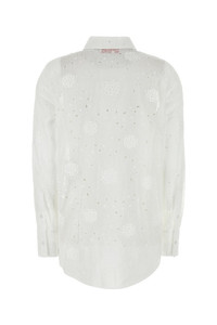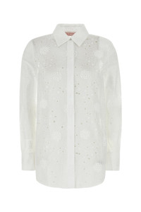 Shirt realized in pure cotton characterized by tonal floral embroideries on the entire surface. - Short-pointed collar - Concealed buttons with single visible button closure - Buttoned angle cuffs DETAILS White cotton shirt Exterior: 100% Cotton Made in italy Sample size: 40