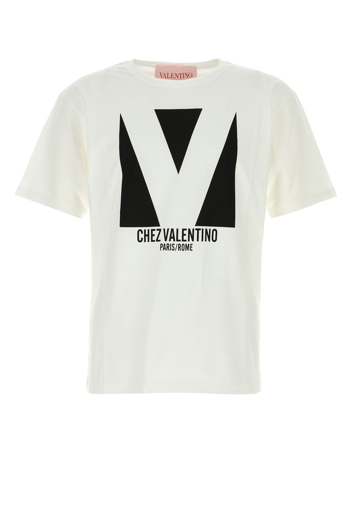 T-shirt realized in pure cotton characterized by contrasting Chez Valentino print at the front. - Ribbed crew-neck DETAILS White cotton t-shirt Exterior: 100% Cotton Made in italy Sample size: M