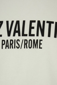 T-shirt realized in pure cotton characterized by contrasting Chez Valentino print on the chest. - Ribbed crew-neck DETAILS White cotton t-shirt Exterior: 100% Cotton Made in italy Sample size: M
