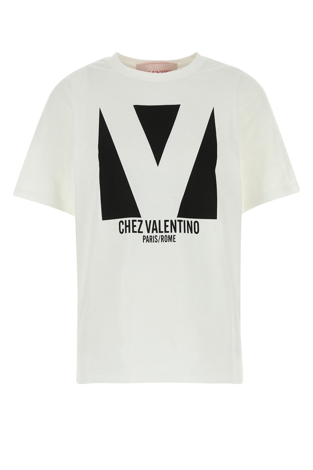 T-shirt realized in pure cotton characterized by contrasting Chest Valentino print at the front. - Ribbed crew-neck - Loose fit DETAILS White cotton t-shirt Exterior: 100% Cotton Made in italy Sample size: XS