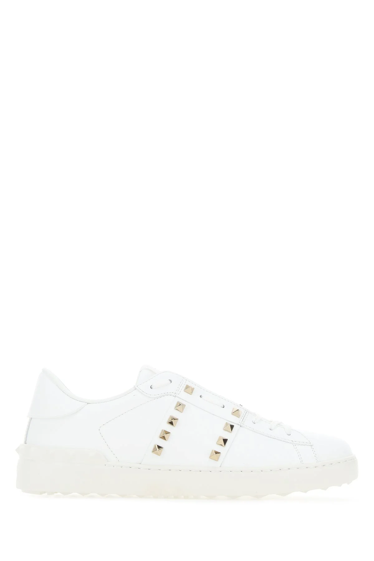 Sneakers realized in smooth calf leather enriched by metal studs on the instep and tonal rubber studs at the back. - Tonal lace-up closure - Logoed label on the padded tongue - Padded ankle - Printed logo on the inside DETAILS White leather Rockstud Untitled sneakers Exterior: 100% Calf Interior: 100% Leather Sole: Rubber Made in italy