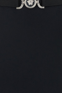 Mini dress realized in pure silk georgette enriched by Medusa '95 metal detail at the front. - Round neckline - Concealed zip closure at the back - Seam pockets - Partially lined DETAILS Exterior: 100% Silk Lining: 100% Fabric Made In Italy Model is 178 cm and is wearing a size 40