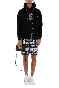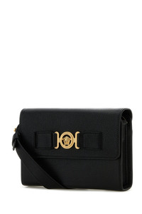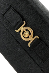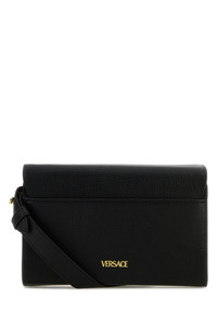 Crossbody bag realized in grained ovine leather characterized by printed laminated logo at the back enriched by metal Medusa Biggie detail at the front. - Adjustable detachable tonal leather shoulder strap - Magnetic button closure under the flap - A slit pocket at the back - Lined interior with a zip pocket, two compartments and tree credit card slot DETAILS Black leather Medusa Biggie crossbody bag Exterior: 100% Ovine leather Lining: 100% Nylon Finishing: Golden metal Made in italy Width: 19 cm Height: 12,5 cm Depth: 6 cm Min shoulder strap length: 55 cm Max shoulder strap length: 60 cm