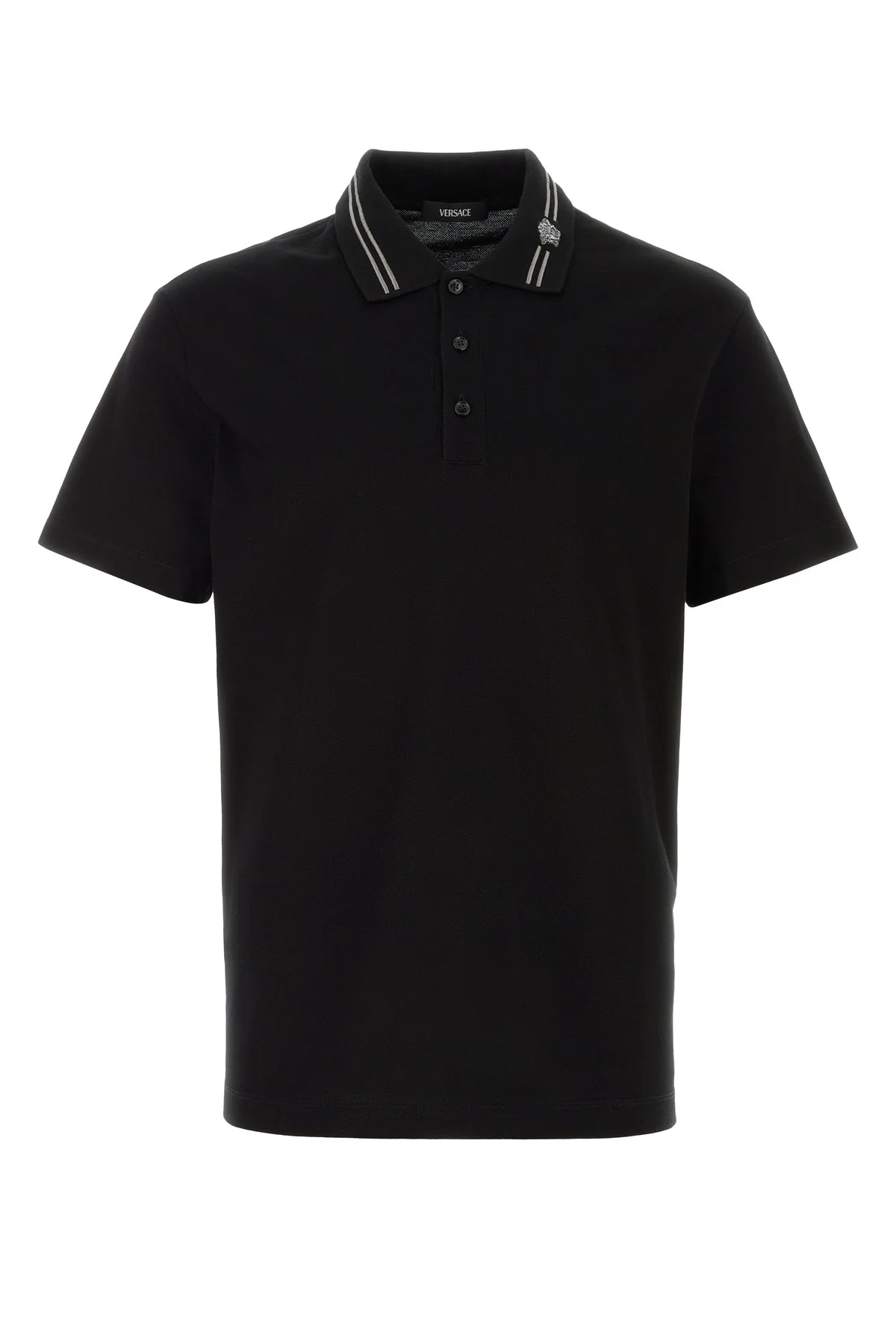 Polo shirt realized in pure cotton piquet enriched by Medusa patch on the collar. - Partial buttons closure DETAILS Black piquet polo shirt Exterior: 100% Cotton Made in tunisia Sample size: M