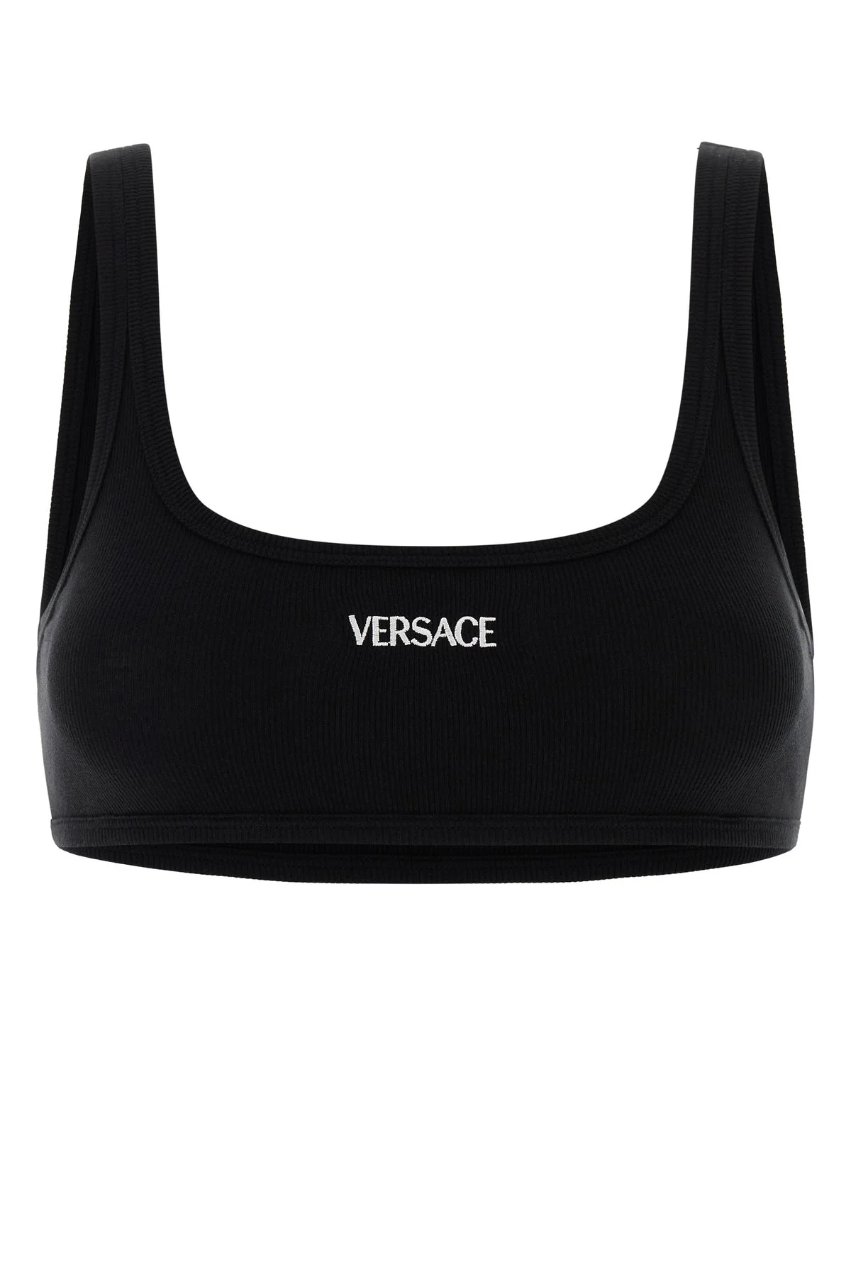 Bra realized in stretch cotton characterized by contrasting embroidered logo on the chest. - Round neckline - Unlined DETAILS Black stretch cotton bra Exterior: 93% Cotton 7% Elastane Made in italy Sample size: 1