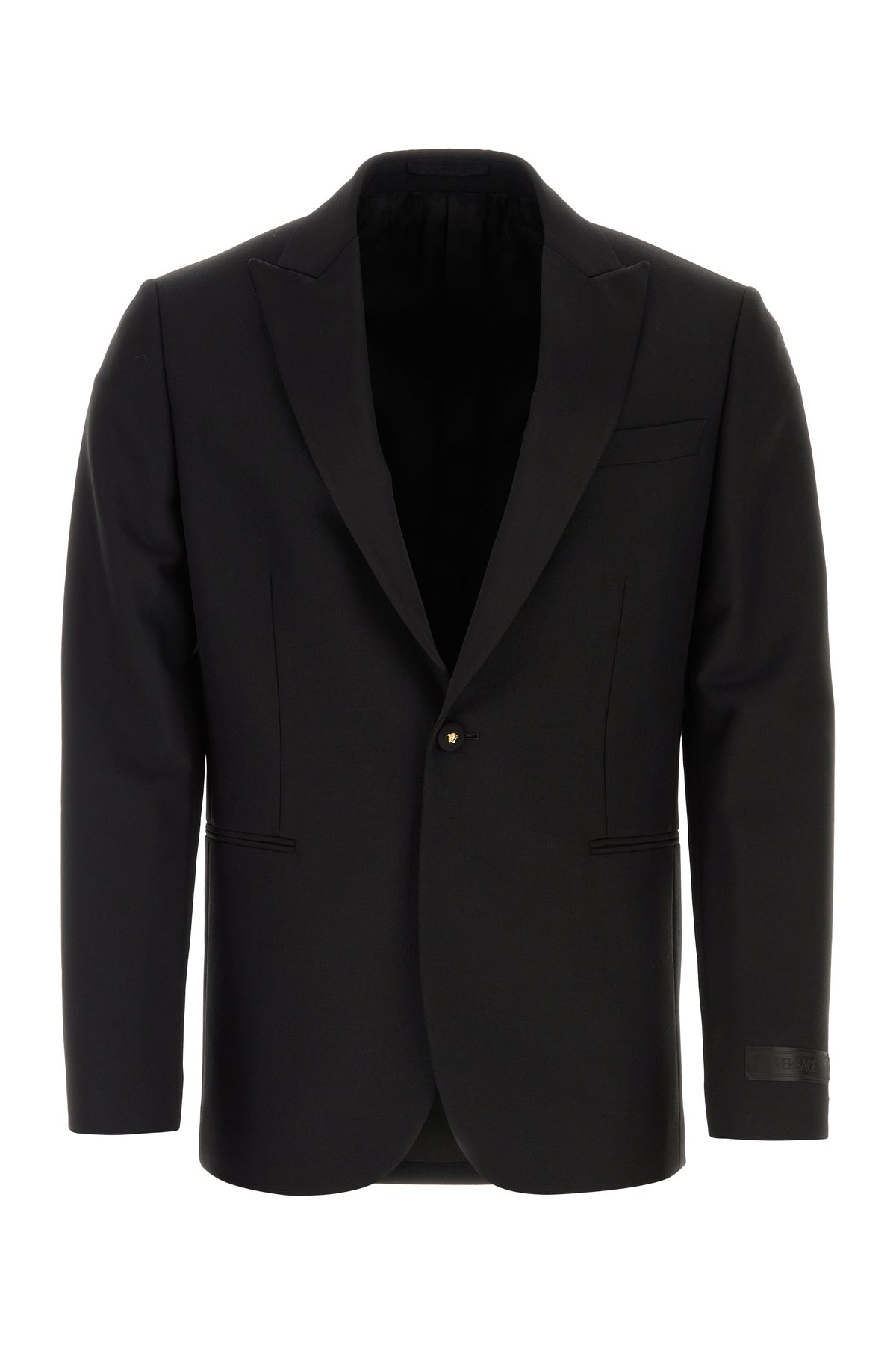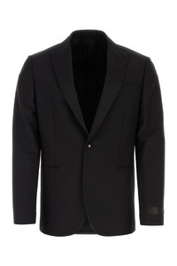 Blazer realized in pure wool enriched by tonal logoed label on the cuffs. - Peak lapels - Single-breasted closure by button - A chest pocket and two slit pockets at the front - A button on the sleeves - Central slit at the back - Lined interior with two slit pockets DETAILS Exterior: 72% Wool 28% Mohair Lining: 100% Cupro Made In Italy Sample size: 48