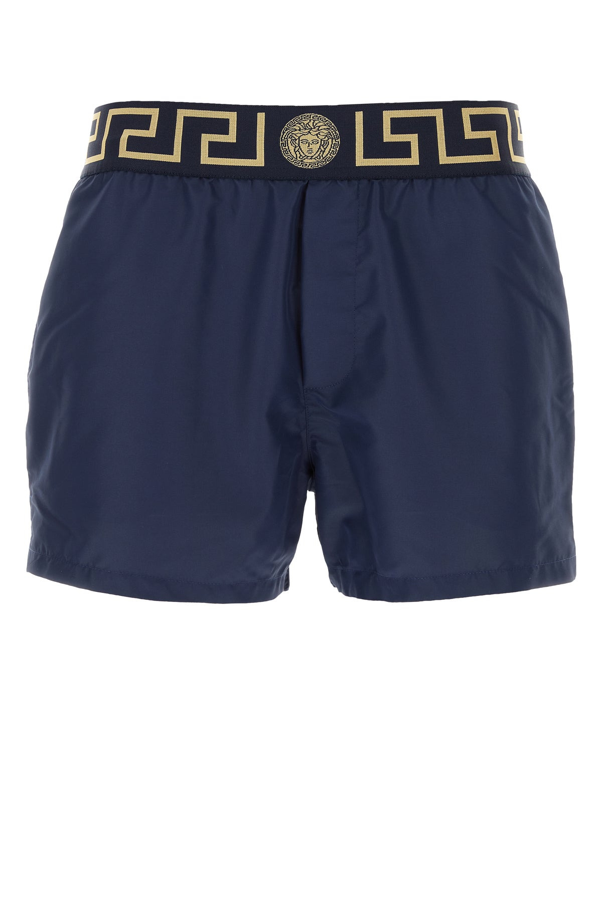 Swimming shorts realized in polyester enriched by contrasting logoed band at the waist. - Elastic waist - Seam pockets and a patch pocket at the back - Partially lined DETAILS Exterior: 100% Polyester Lining: 94% Nylon 6% Elastane Made In Italy Sample size: III