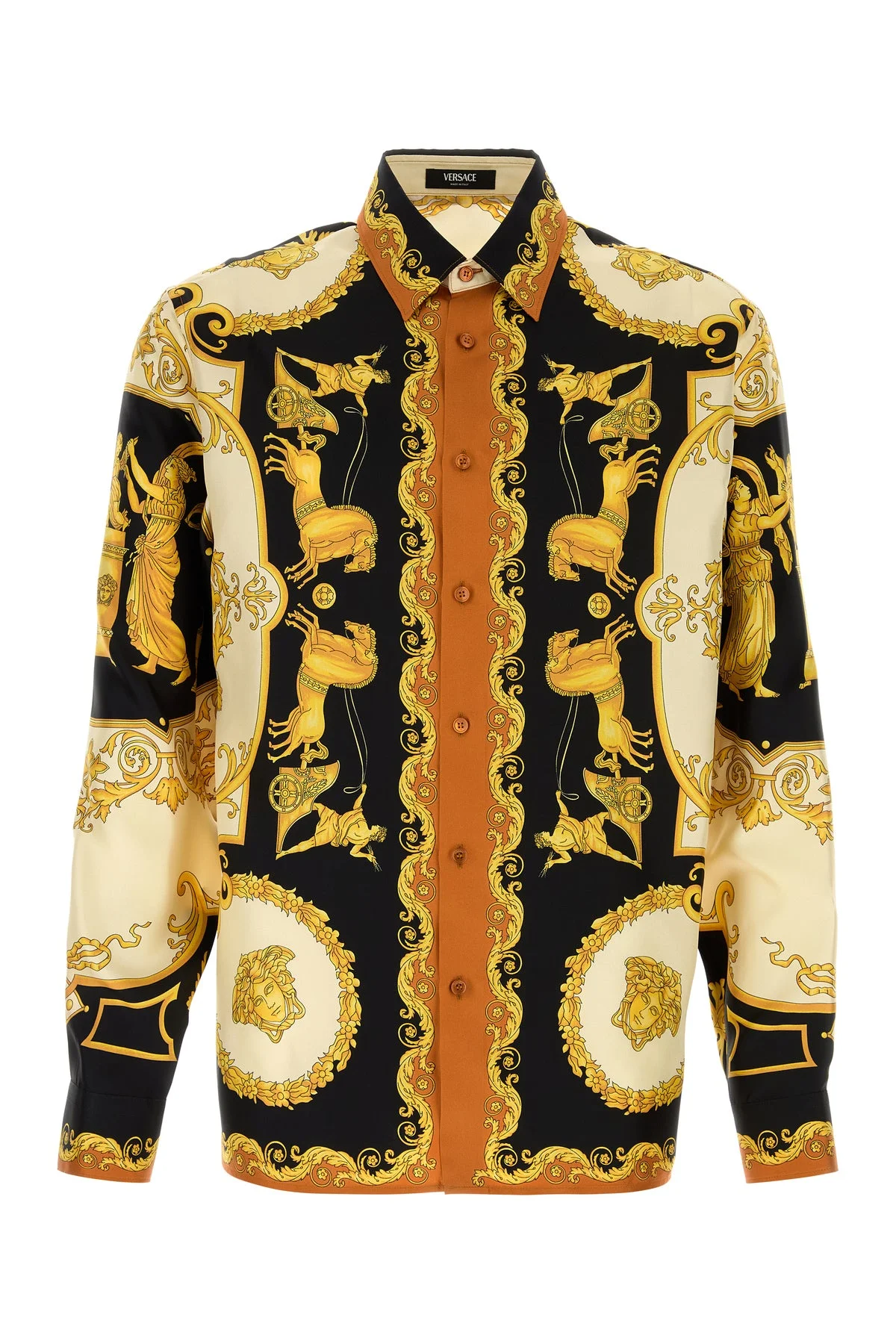 Shirt realized in pure silk characterized by Hall of Heroes print on the entire surface. - Short-pointed collar - Buttons closure - Buttoned angle cuffs DETAILS Printed silk shirt Exterior: 100% Silk Made in italy Sample size: 48