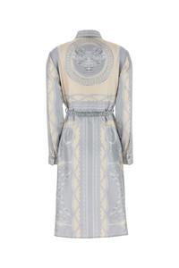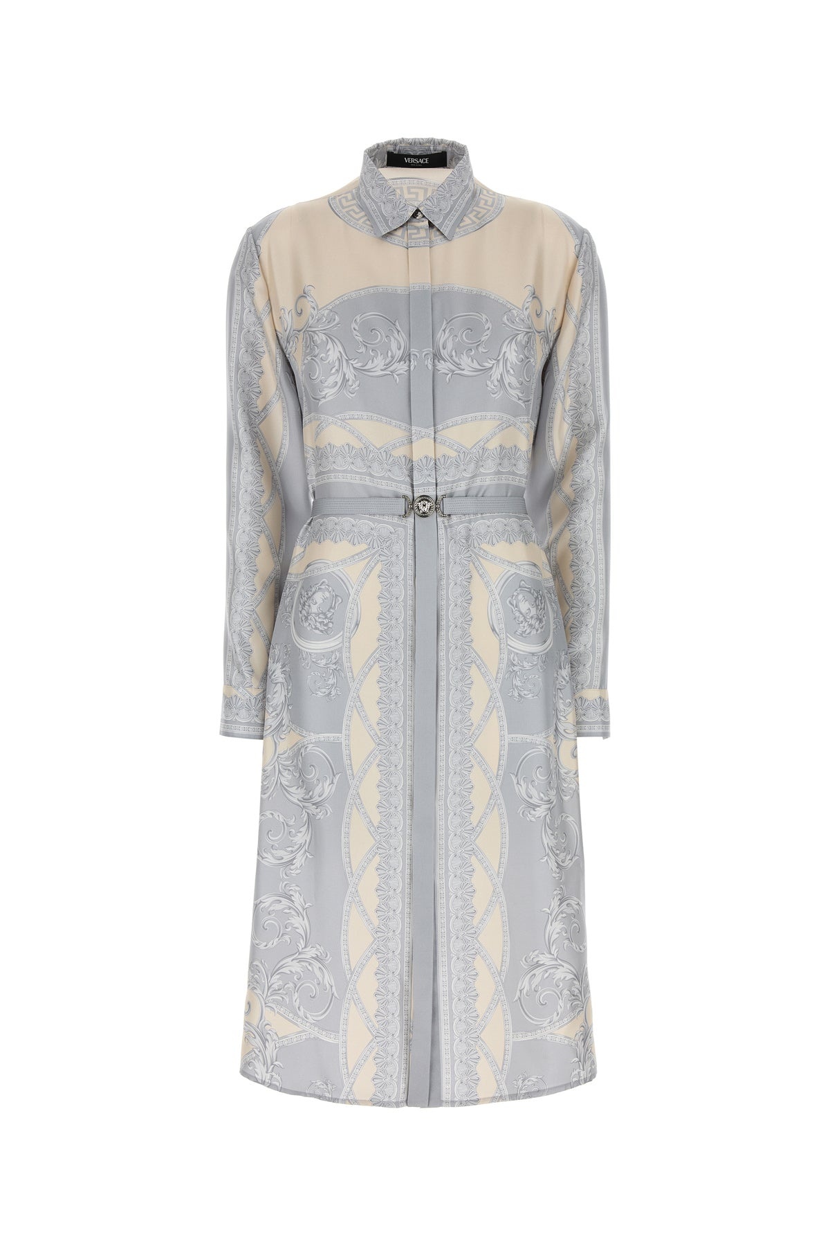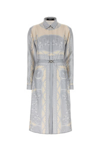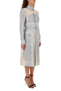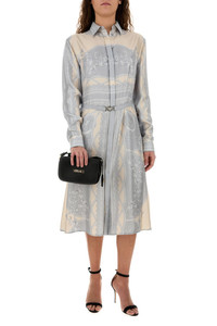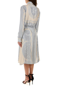 Shirt dress realized in pure silk characterized by La Coupe des Dieux print on the entire surface enriched by detachable belt with metal Medusa '95 details. - Pointed collar - Concealed buttons closure at the front - Buttoned cuffs - Unlined DETAILS Printed silk shirt dress Exterior: 100% Silk Made in italy Model is 170 cm and is wearing a size 40