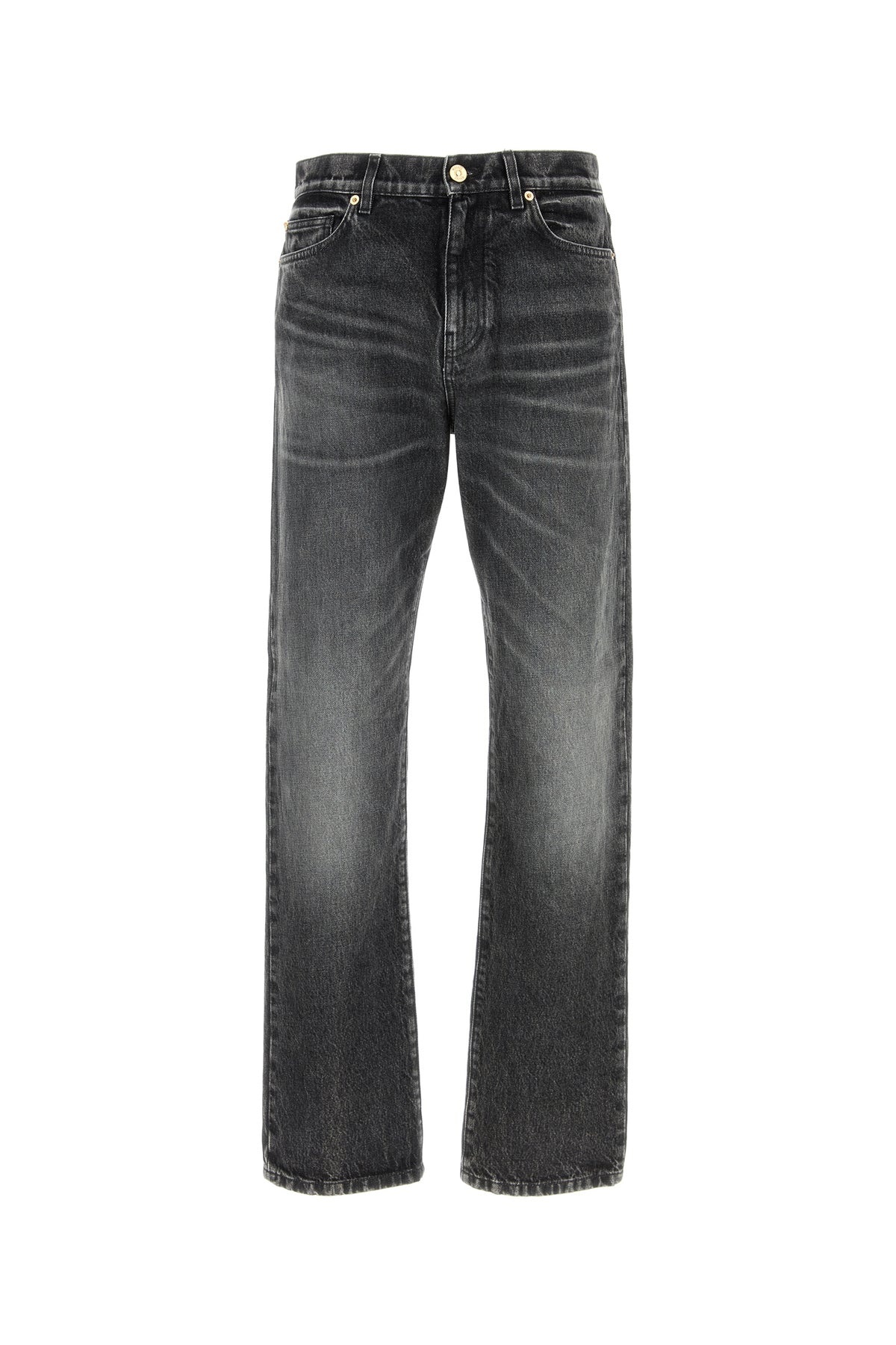 Jeans realized in stonewashed pure cotton denim characterized by logo in relief at the back. - Belt loops at the waist - Concealed zip and single visible button closure - Five classic pockets - Contrasting logged label at the back DETAILS Slate denim jeans Exterior: 100% Cotton Made in italy Sample size: 31