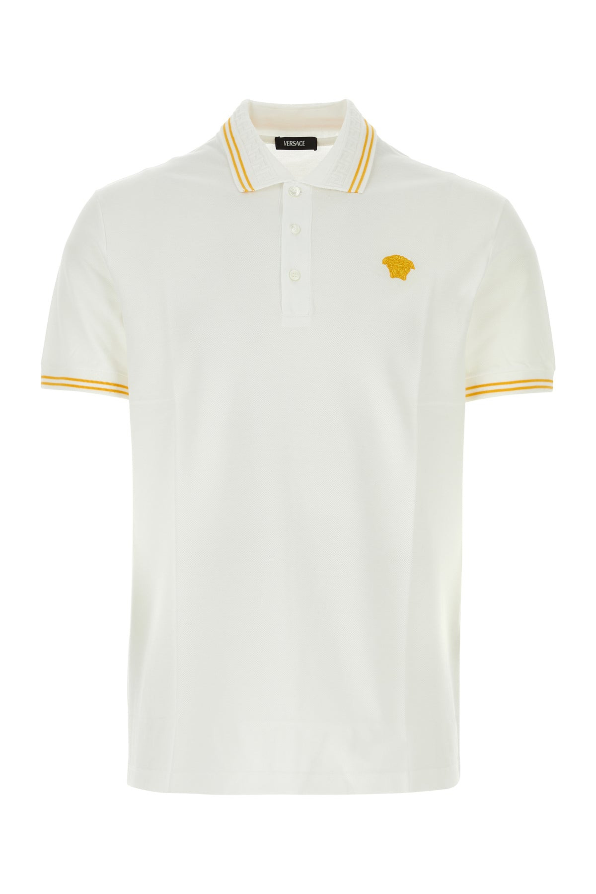 Polo shirt realized in pure cotton piquet characterized by Greca motivo embroidery on the collar and contrasting Medusa embroidery on the chest. - Partial buttons closure - Ribbed cuffs DETAILS Exterior: 100% Cotton Made In Tunisia Sample size: M