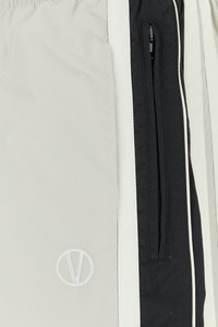Joggers realized in polyester characterized by contrasting logoed embroidery at the front. - Elastic waist - Seam pockets and two zip pockets at the front - Mesh lined - Flared hemline DETAILS Chalk polyester joggers Exterior: 100% Polyester Lining: 100% Nylon Made in italy Sample size: S