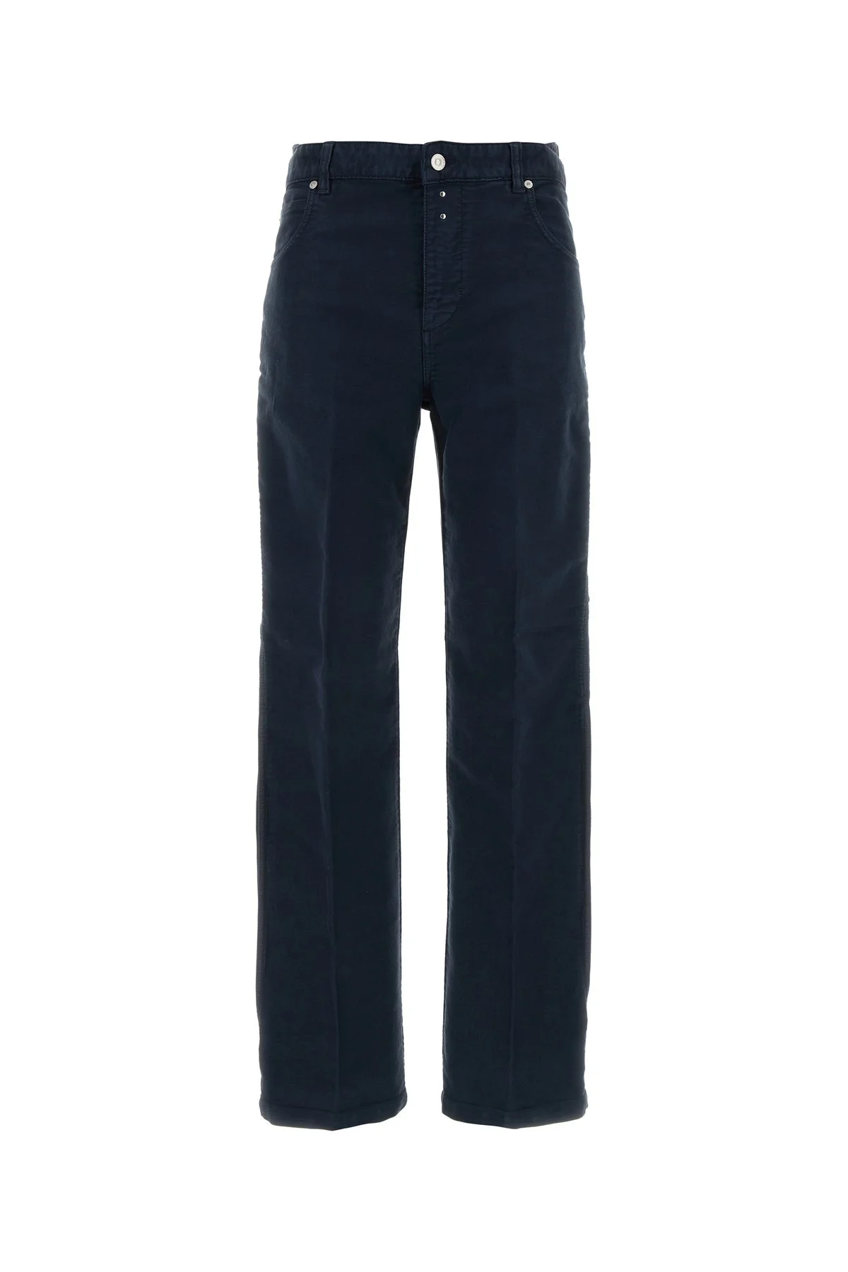 Pant realized in pure cotton enriched by logoed label at the back. - Belt loops at the waist - Concealed zip and single visible button closure - Five classic pockets DETAILS Dark blue cotton Julia pant Exterior: 100% Cotton Made in italy Sample size: 26