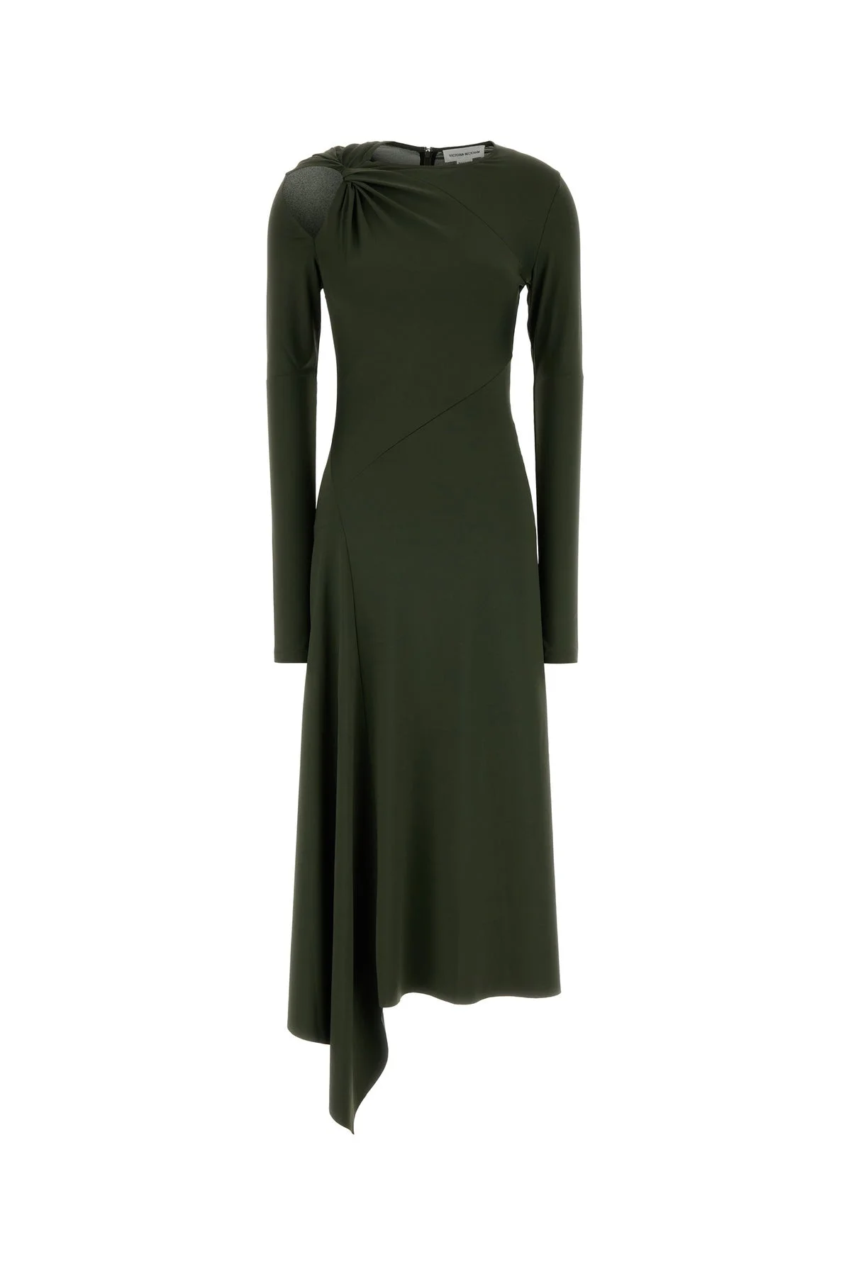 Dress realized in jersey characterized by cut-out detail at the top. - Crew-neck - Concealed zip closure at the back - Asymmetric hemline - Unlined DETAILS Olive green jersey dress Exterior: 90% Polyester 10% Elastane Made in portugal Sample size: 6