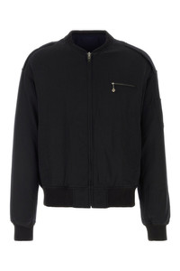 Down jacket realized in wool and linen. - Ribbed collar, cuffs and hemline - Concealed zip closure - Chest pocket and two slit pockets at the front - Lined DETAILS Black wool blend Gunner down jacket Exterior: 80% Wool 20% Linen Lining: 56% Wool 44% Linen Padding: 93% Down 10% Feather Made in japan Sample size: III