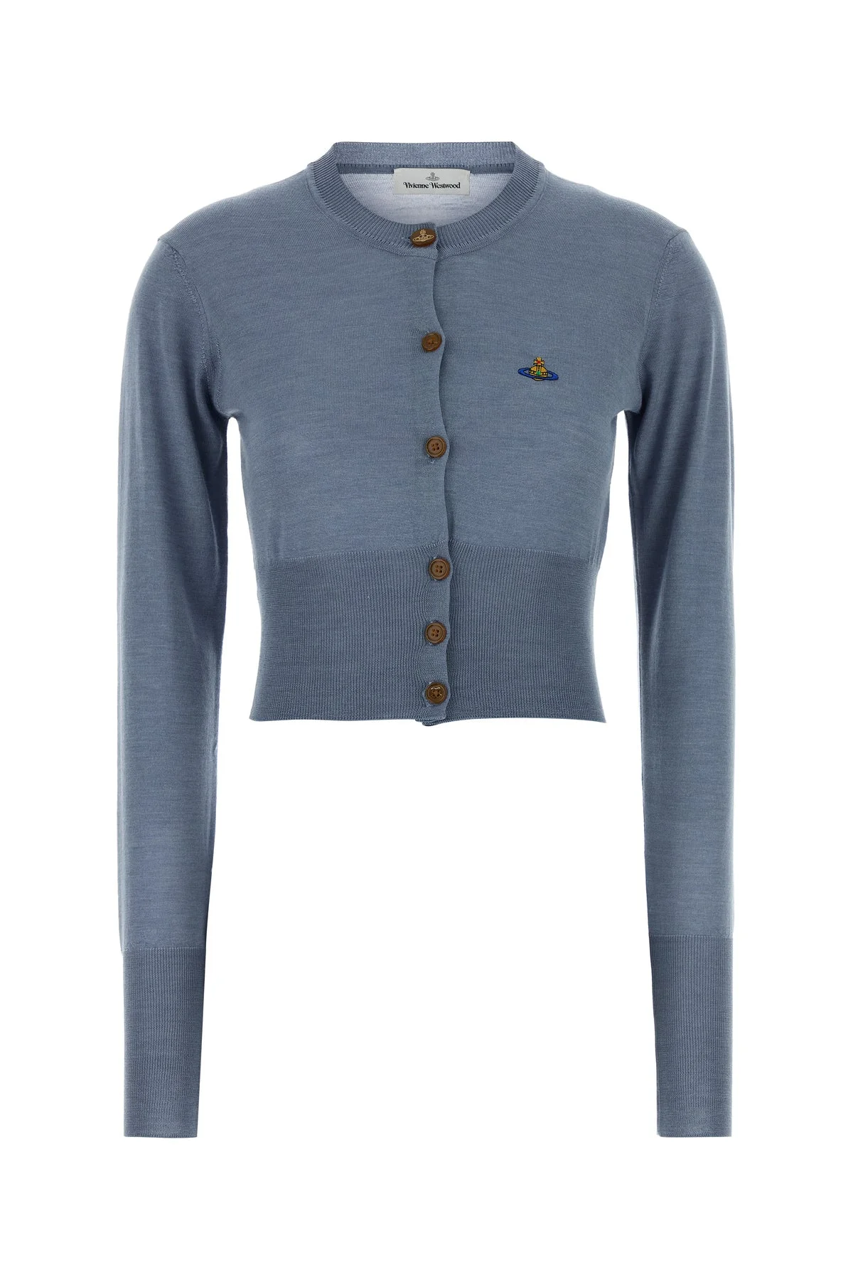 Cropped-cut cardigan realized in pure merino wool characterized by contrasting Orb embroidery on the chest. - Ribbed crew-neck, cuffs and hemline - Buttons closure DETAILS Cerulean blue wool Bea cardigan Exterior: 100% Merino wool Made in italy Sample size: XS