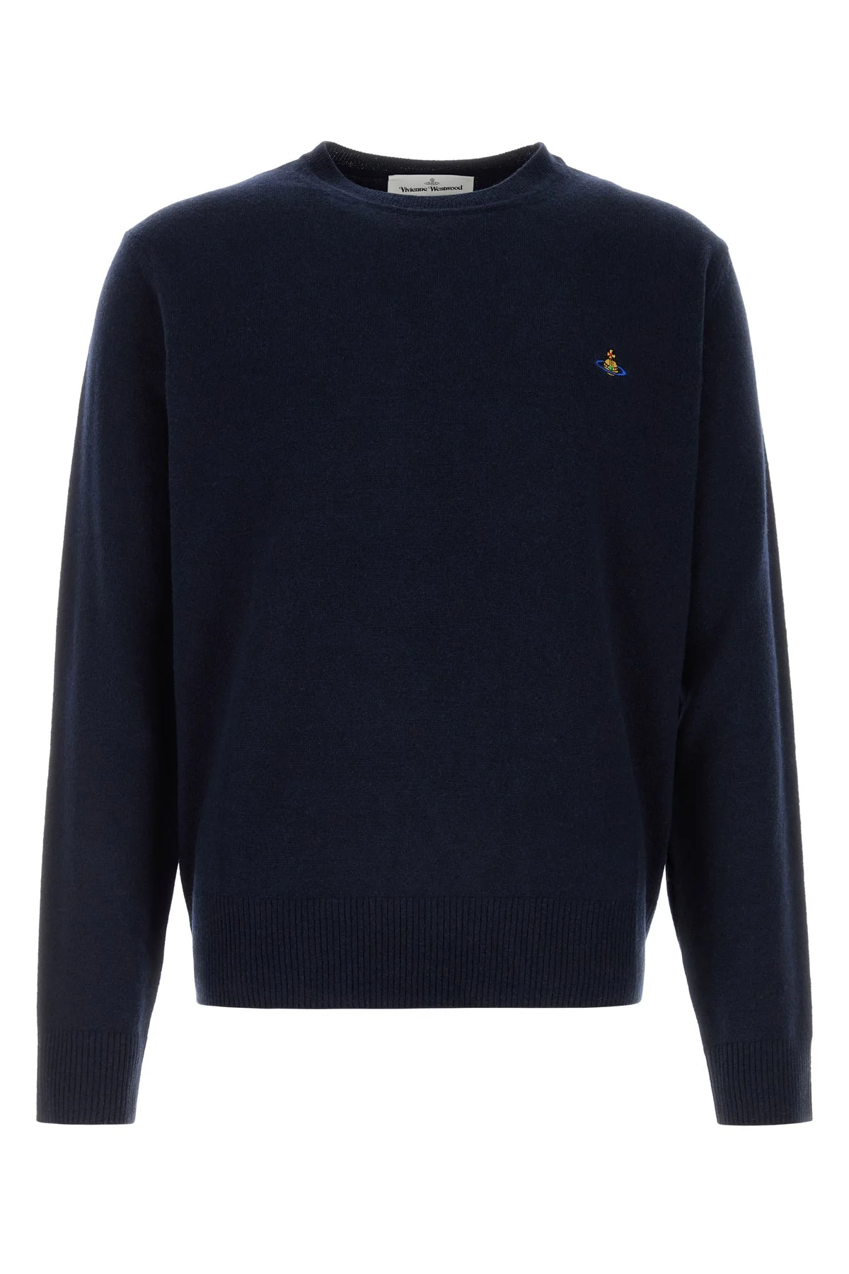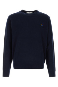 Sweater realized in merino wool and cashmere characterized by Orb embroidery on the chest. - Ribbed crew-neck, cuffs and hemline DETAILS Midnight blue wool blend Alex sweater Exterior: 90% Merino wool 10% Cashmere Made in italy Sample size: M