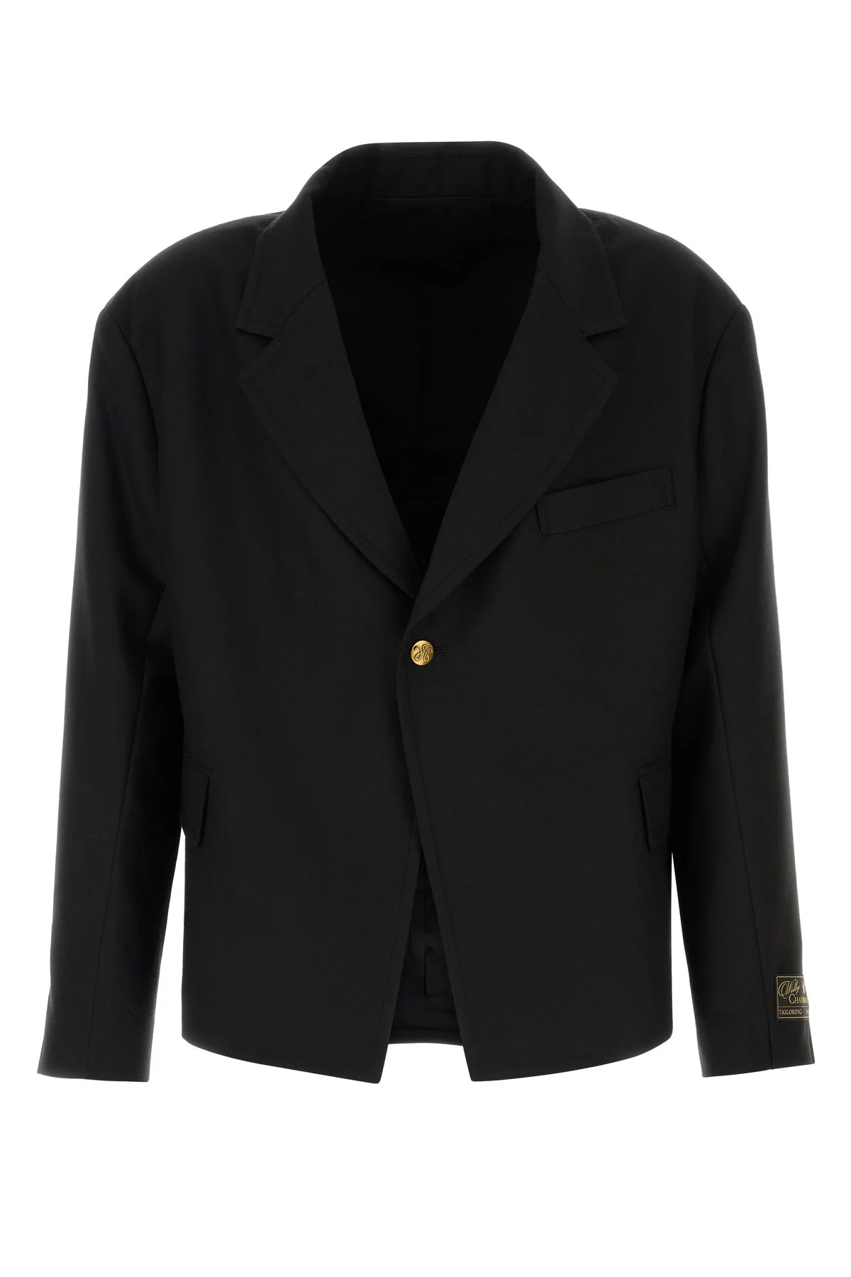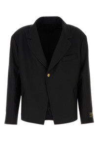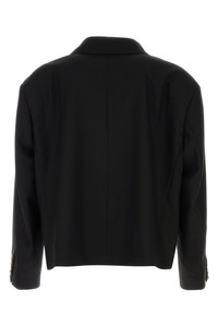 Oversize blazer realized in pure wool enriched by logoed label on the cuff. - Notched collar - Single-breasted buttons closure - A chest pocket and two flap pockets at the front - Four buttons on the sleeves - Lined interior with two slit pockets DETAILS Black wool oversize blazer Exterior: 100% Virgin wool Lining: 100% Cotton Made in italy Sample size: S
