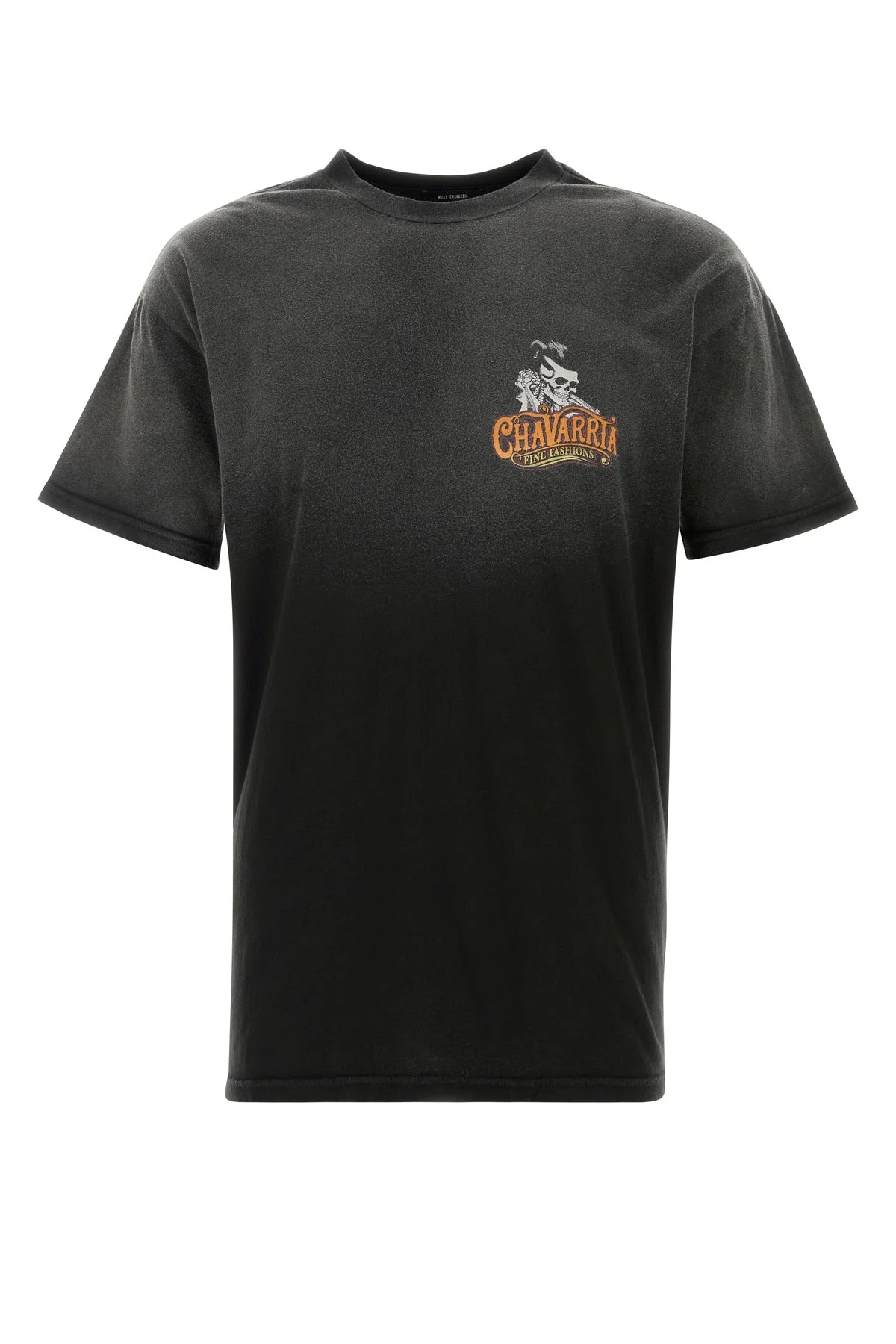 T-shirt realized in stonewashed pure cotton characterized by Pomade print on the chest and at the back. - Ribbed crew-neck DETAILS Slate cotton t-shirt Exterior: 100% Cotton Made in usa Sample size: M