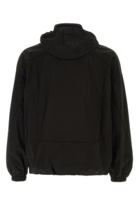 Windbreaker realized in polyester blend enriched by metal lettering logo at the front and metal logoed detail at the back. - Pull-out hood - High neck - Zip closure - Two zip pockets at the front - Gathered elastic cuffs and hemline - Lined DETAILS Black polyester blend windbreaker Exterior: 46% Polyester 33% Nylon 21% Cotton Lining: 100% Polyester Made in korea Sample size: 48