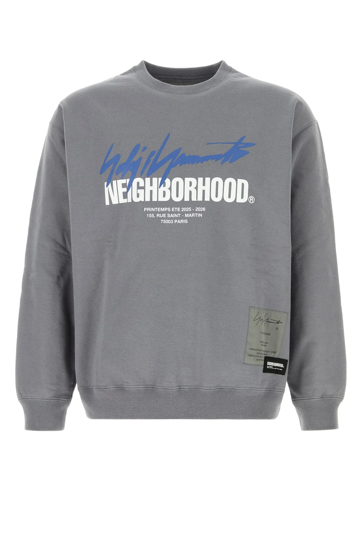 Sweatshirt created in collaboration with Neighborhood realized in pure cotton characterized by contrasting logoed print on the chest enriched by logoed labels on the hemline. - Ribbed crew-neck, cuffs and hemline DETAILS Grey cotton Yohji Yamamoto X Neighborhood sweatshirt Exterior: 100% Cotton Made in japan Sample size: 3
