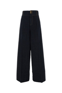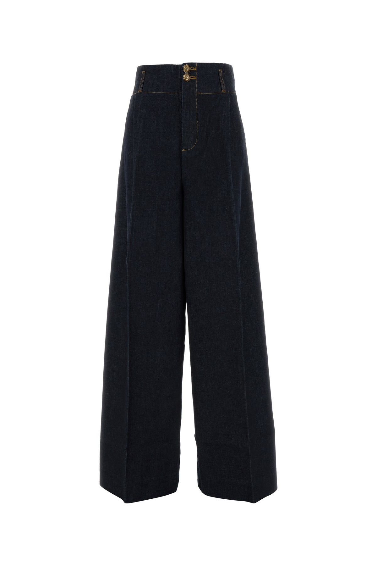 Wide-leg jeans realized in cotton blend denim characterized by inverted pleats. - High waist - Belt loops at the waist - Concealed zip and visible buttons closure - Slant pockets and two slit pockets at the back DETAILS Denim Hypnotic wide-leg jeans Exterior: 75% Cotton 25% Viscose Made in china Sample size: 1