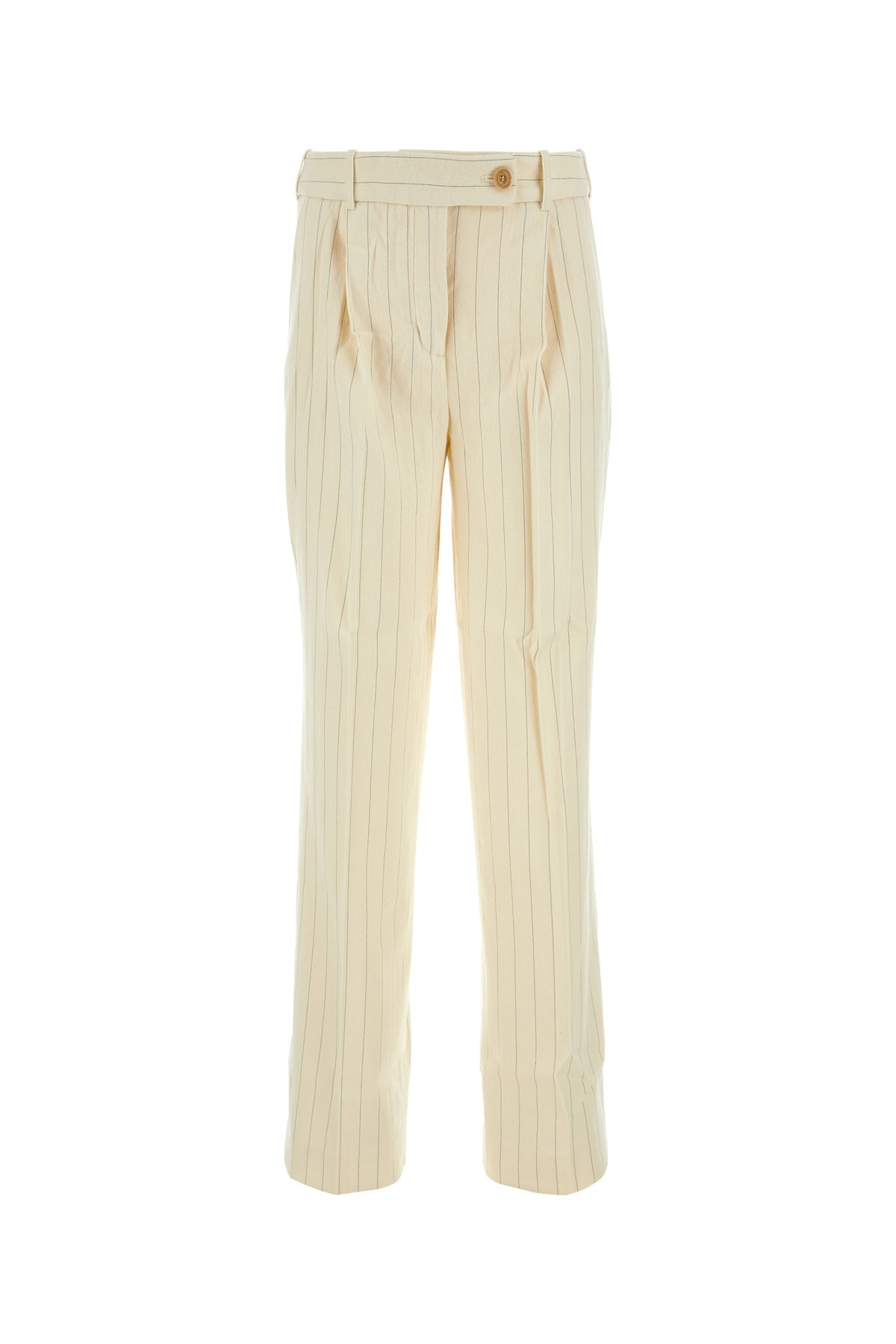 Wide-leg pant realized in wool and cotton characterized by pin-striped motif on the entire surface. - Belt loops at the waist - Concealed zip, buttons and hook closure - Two slit pockets at the front and two slit pockets at the back DETAILS Exterior: 86% Wool 14% Cotton Made In Portugal Sample size: 1