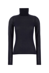 Long-sleeve top realized in knit. - Turtleneck DETAILS Navy blue knit top Exterior: 73% Lyocell 27% Acetate Made in china Sample size: 1