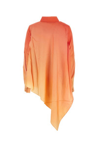 Shirt realized in shaded-effect pure silk characterized by asymmetric hemline at the back. - Short-pointed collar - Concealed buttons closure - Buttoned angle cuffs - Loose fit DETAILS Two-tone silk Tranquillity shirt Exterior: 100% Silk Made in china Model is 177 cm and is wearing a size 1