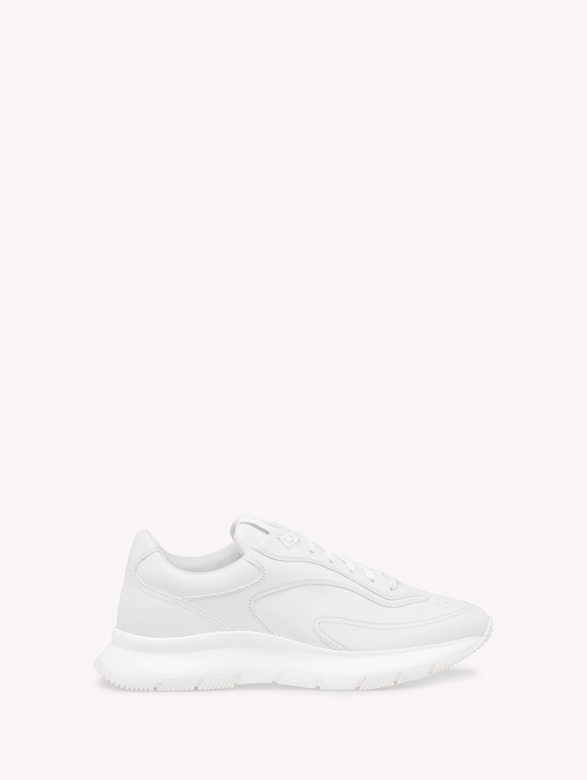 Crafted from leather and recycled nylon, 24 is a running shoe with a rubber sole and front laces. The pulltab features the embroidered Ribbon detail, signature of the brand. Handmade in Italy. - Composition: 100% CALF - Heel Height: M1 - Model Code: S25397.M1WHT Item ID: S25397.M1WHT.CLNBIAN