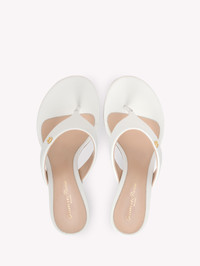 Crafted from soft precious leather, Ascent Thong 55 is a thong sandal with a round toe and a tonal laquered flare 55mm kitten heel. The design is enriched with the metallic Ribbon detail, signature of the Maison. Handmade in Italy. - Composition: 100% NAPPA - Heel Height: 2.2 inches / 55 mm - Model Code: G10057.55LAC Item ID: G10057.55LAC.NAPBIAN