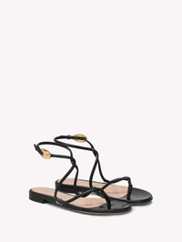 Crafted from metallic-effect leather, Jungle Mamba Flat is a round toe sandal with a 12mm heel. The design presents a sinuous snake's coil inspired upper motif. The snake head also inspires the custom-made metallic buckle. Handmade in Italy. - Composition: 95% NAPPA + 5% TPU - Heel Height: 0.2 inches / 5 mm - Model Code: G32557.05RIC Item ID: G32557.05RIC.NUGNETR