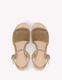 Crafted from suede and woven raffia, Carol is a round toe sandal with a 40mm platform and a 75mm block heel. The ankle strap is finely adorned with a suede-covered round buckle. Handmade in Italy. - Composition: 100% SUEDE - Heel Height: 1.4 inches / 35 mm - Model Code: G32684.35RIC Item ID: G32684.35RIC.CBLCMNA
