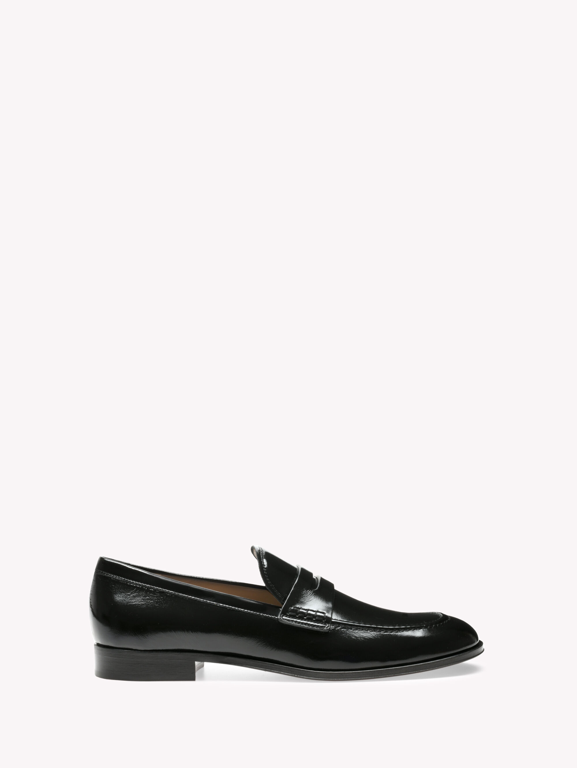 Finely distinguished by a front penny bar, George is a soft glossy leather moccasin with a round toe and a 20mm stack heel. Handmade in Italy. - Composition: 100% NAPPA - Heel Height: 0.8 inches / 20 mm - Model Code: U25350.20CUO Item ID: U25350.20CUO.NUINERO