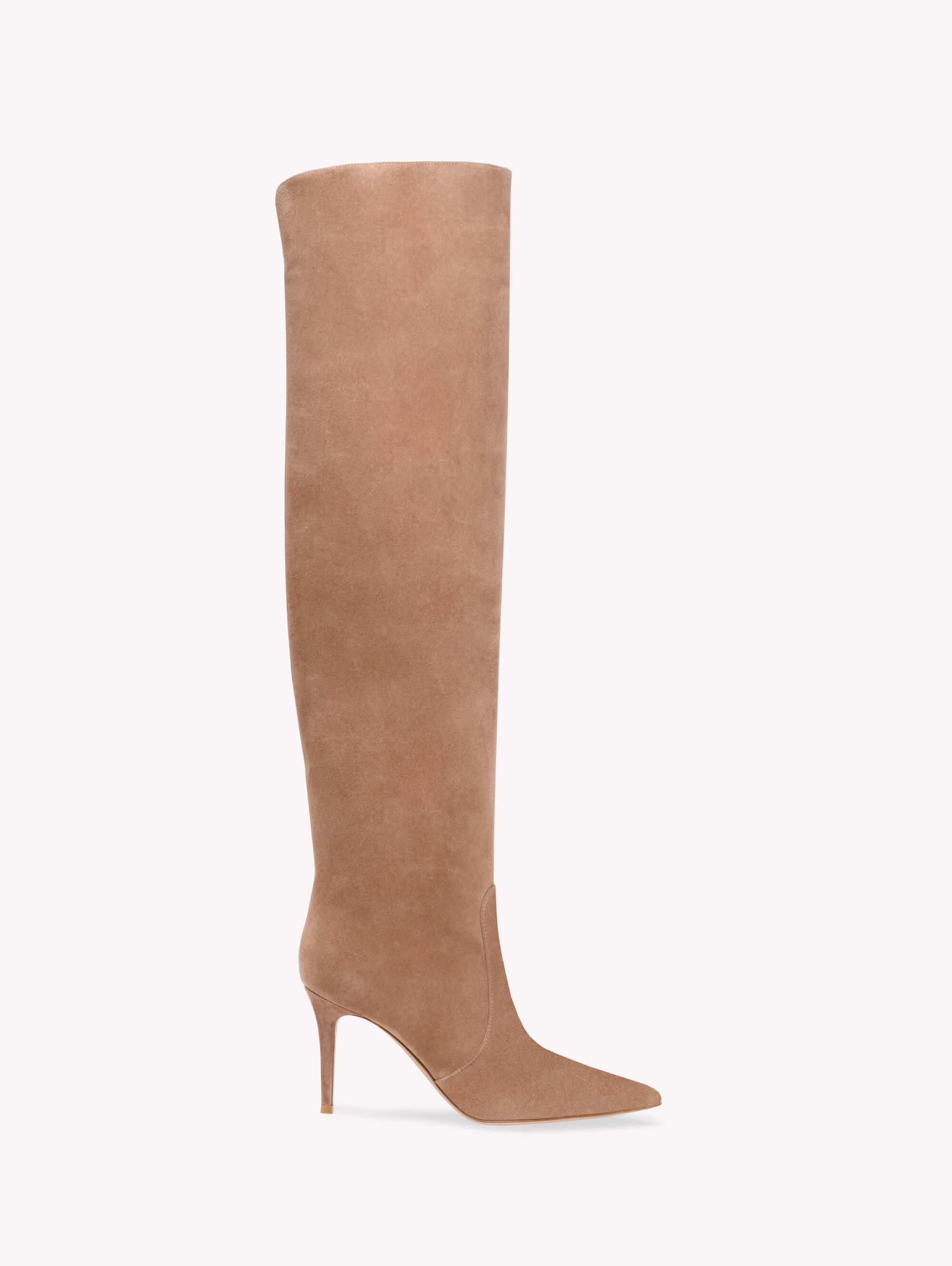 Crafted from supple suede, Hansen Cuissard is a pull-on over-the-knee boot with a pointed toe and an 85mm stiletto heel. Only the finest leather quality achieves a level of perfection and uniformity that is unparalleled in both touch and appearance. These over-the-knee boots enhance color nuances through the softness of the most exquisite suede. Handmade in Italy. - Composition: 100% SUEDE - Heel Height: 3.3 inches / 85 mm - Model Code: G80142.85RIC Item ID: G80142.85RIC.C45PRAL