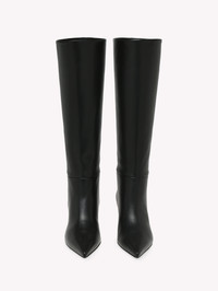 Crafted from leather, Joyce is a pointed-toe pull-on knee boot with a tonal lacquered 55mm flare kitten heel. Handmade in Italy. - Composition: 100% CALF - Heel Height: 2.2 inches / 55 mm - Model Code: G80183.55LAC Item ID: G80183.55LAC.VGINERO