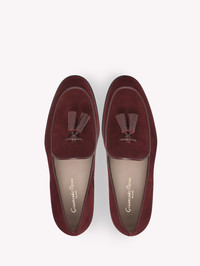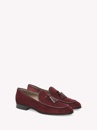 Crafted from suede, Julio is a round toe loafer with calfskin leather piping and tassels. Handmade in Italy. - Composition: 70% SUEDE + 30% CALF - Heel Height: 0.8 inches / 20 mm - Model Code: U25220.20CUO Item ID: U25220.20CUO.SUTRYRY