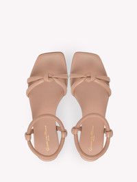 Juno 05 is a square toe sandal with a 5mm stack leather heel. Crafted from leather, this style features soft tubular upper straps with knotted details. The round tubular elastic ankle strap is covered in leather to ensure easy wearability. Handmade in Italy. - Composition: 100% NAPPA - Heel height: 0.2 inches / 5 mm - Model Code: G32324.05CUO Item ID: G32324.05CUO.NAPPRAL
