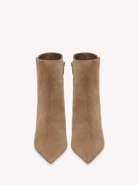 Set on a 55mm stiletto heel, Levy 55 is a pointed toe ankle bootie crafted from suede. The design stands out for its curved detail on the upper edge. Handmade in Italy. - Composition: 100% SUEDE - Heel Height: 2.2 inches / 55 mm - Model Code: G73868.55RIC Item ID: G73868.55RIC.CASCAML
