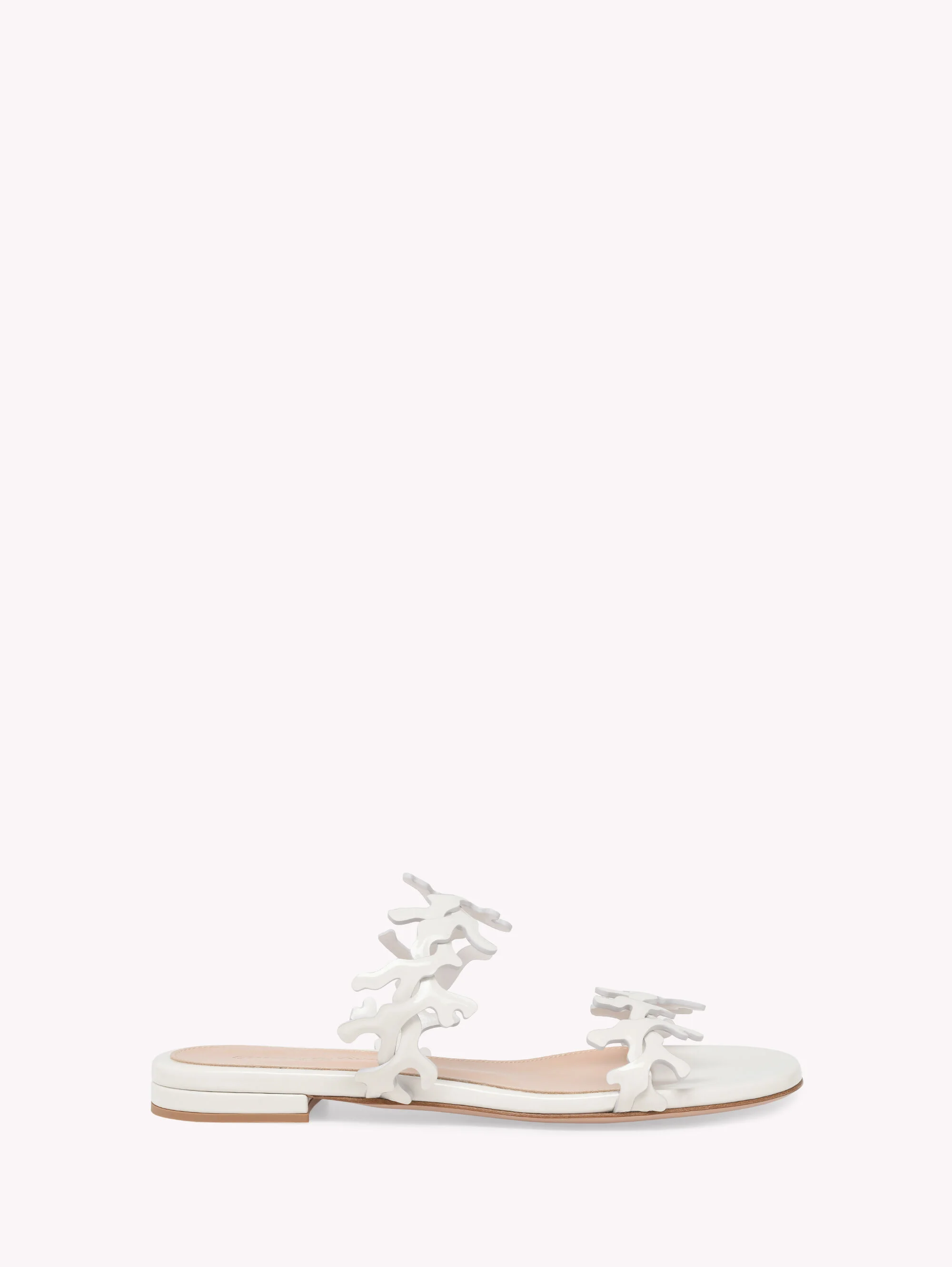 Crafted from Nuit, the Maison's distinctive soft glossy leather, Ocean Mule is a round toe flat style with a laser-cut coral motif and a 10mm low heel. Handmade in Italy. - Composition: 100% NAPPA - Heel Height: 0.2 inches / 5 mm - Model Code: G10157.05RIC Item ID: G10157.05RIC.NUIOFFW