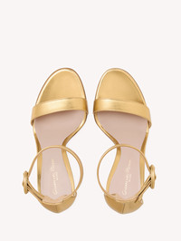 Designed to give a modern twist to the elegant sandal, the Portofino features a higher strap and a covered buckle enhancing the line and strengthening femininity. Crafted from our soft metallic nappa in Mekong gold with lightly cushioned insoles, those signature sandals are the comfortable must have of every wardrobe from casual days to red carpet. - Composition: 100% NAPPA - Heel height: 105 - Model Code: G61096.15RIC Item ID: G61096.15RIC.NPSMEKO