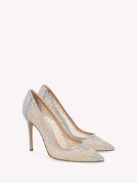 The Rania: an elegant Silver and Nude pump embellished with crystals in a stylish suede and mesh combination on a 105 mm stiletto heel. - Composition: 20% SUEDE + 80% FABRIC - Heel height: 105 - Model Code: G20130.15RIC Item ID: G20130.15RIC.BORSINU