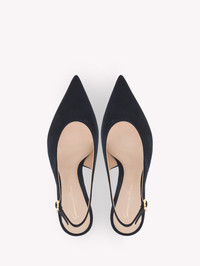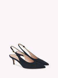 Crafted from supple suede, Robbie Sling 55 is a pointed-toe slingback with a high cut vamp and a 55mm kitten heel. The back strap is embellished with the Maison's signature Ribbon buckle. Handmade in Italy. - Composition: 100% SUEDE - Heel Height: 2.2 inches / 55 mm - Model Code: G95538.55RIC Item ID: G95538.55RIC.CAMDENI