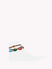 Shanti Anklet is a one size leather anklet embellished with Chakra-inspired oval natural cabochon stones and metallic studs. The anklet is right foot only. The design is finished with the iconic Ribbon buckle, signature of the Maison. Handmade in Italy. - Composition: 100% NAPPA - Heel Height: AN - Model Code: QXX439.ANKLE Item ID: QXX439.ANKLE.MG9CUOI_PZ