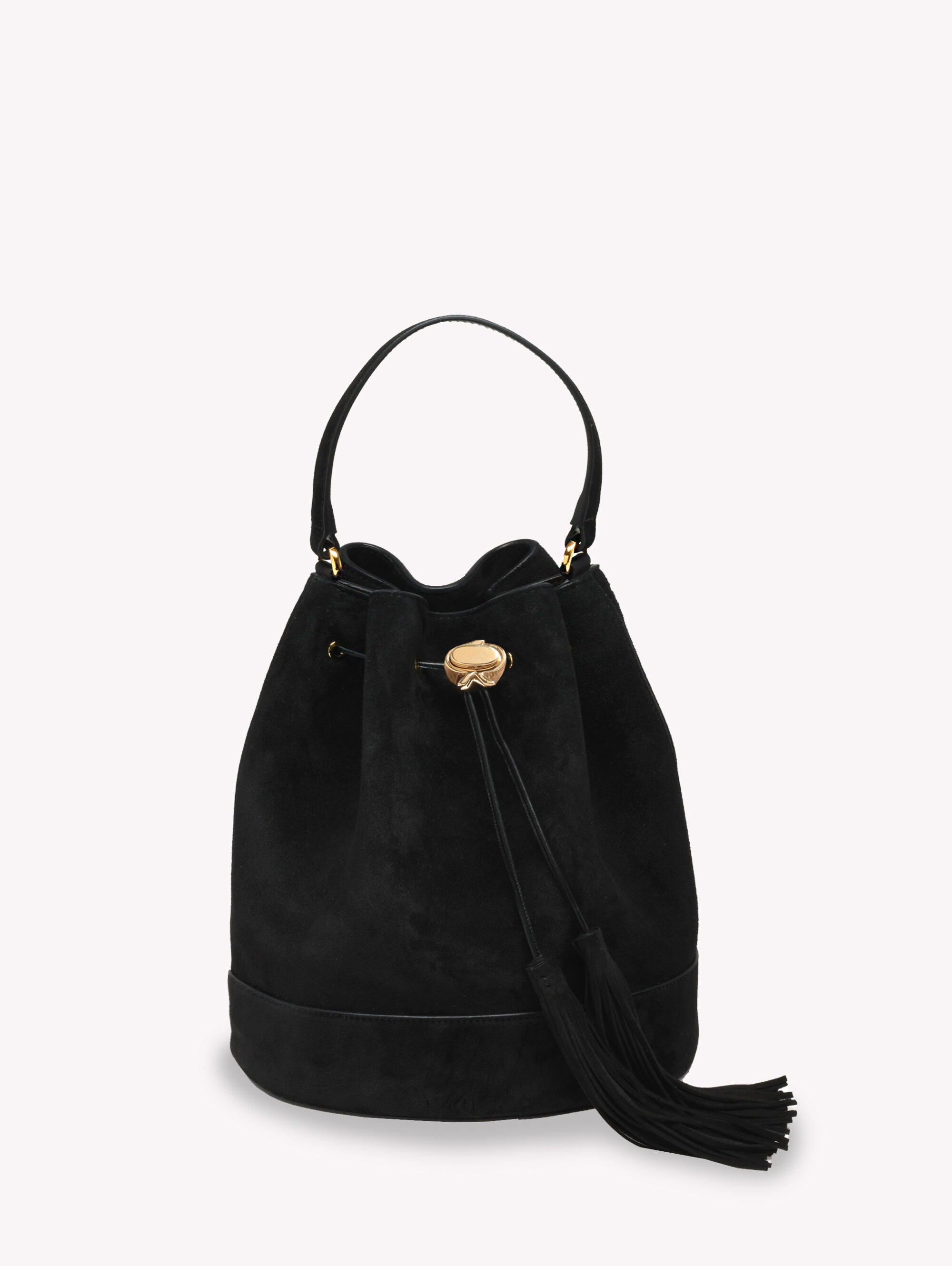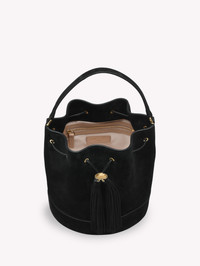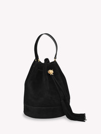 Crafted from supple suede, Sienna 22 is a bucket bag with the signature Ribbon toggle, a top handle and an adjustable and removable shoulder strap. The inside of the bag, lined in satin, presents a pocket and a metallic zip. Handmade in Italy. Size: H 25cm; W 22cm; D 18cm. - Composition: - Heel Height: RI - Model Code: B00308.RIBBK Item ID: B00308.RIBBK.CAMNERO_PZ